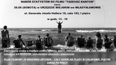 Agencja Castingowa OUTSIDE ogłasza nabór statystów do filmu „Tadeusz Kantor”. Zapisy: sobota (26 września) w godz. 13:00–19:00 w Urzędzie Miejskim Czytaj więcej…